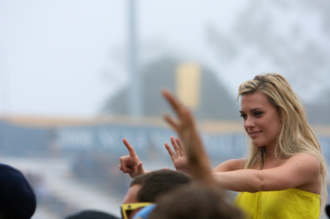 Giving someone your phone number using hand signals, while riding on the shoulders of your boyfriend? Priceless.