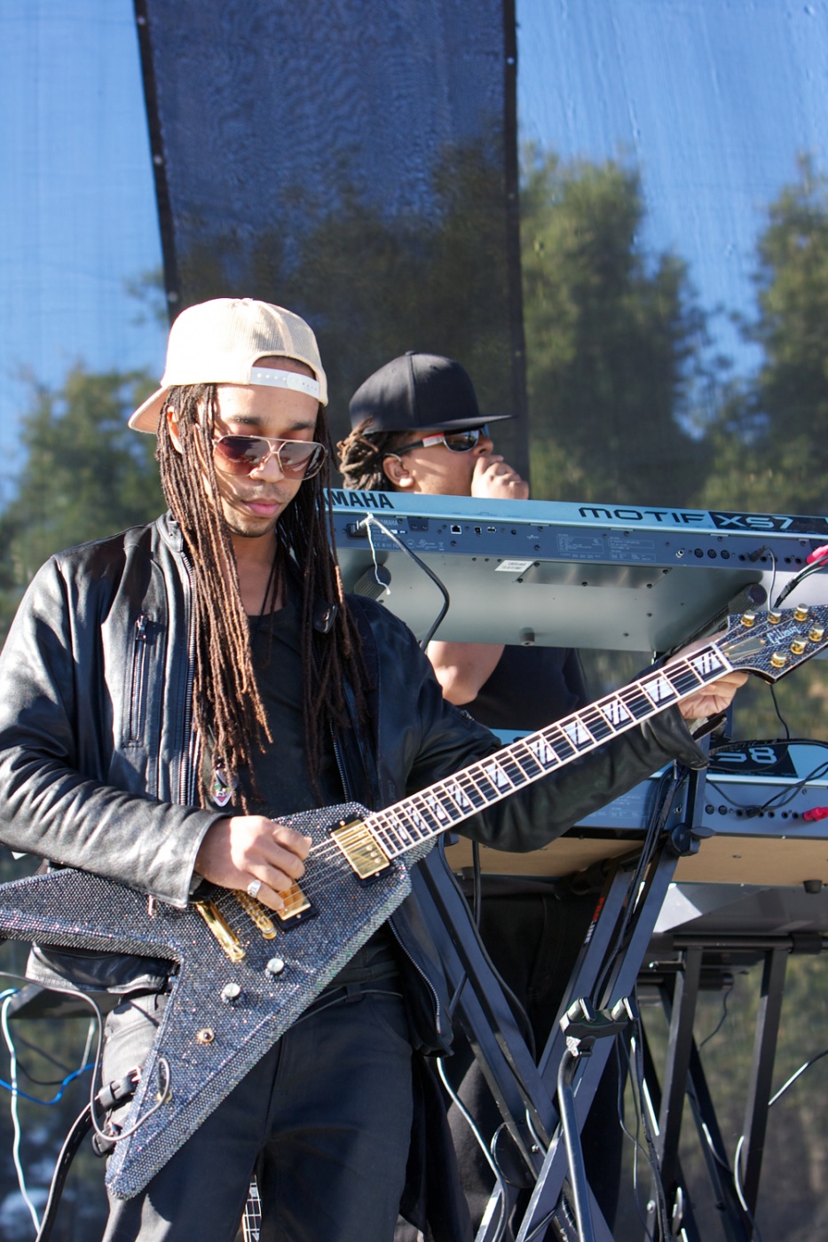 Drake was backed up by a keyboard player and this man on an awesomely shaped glitter guitar.