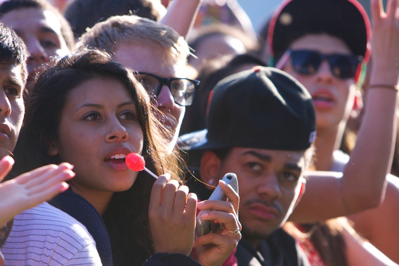 Lollipops - as close as you get to real sustenance at the front of the crowd.